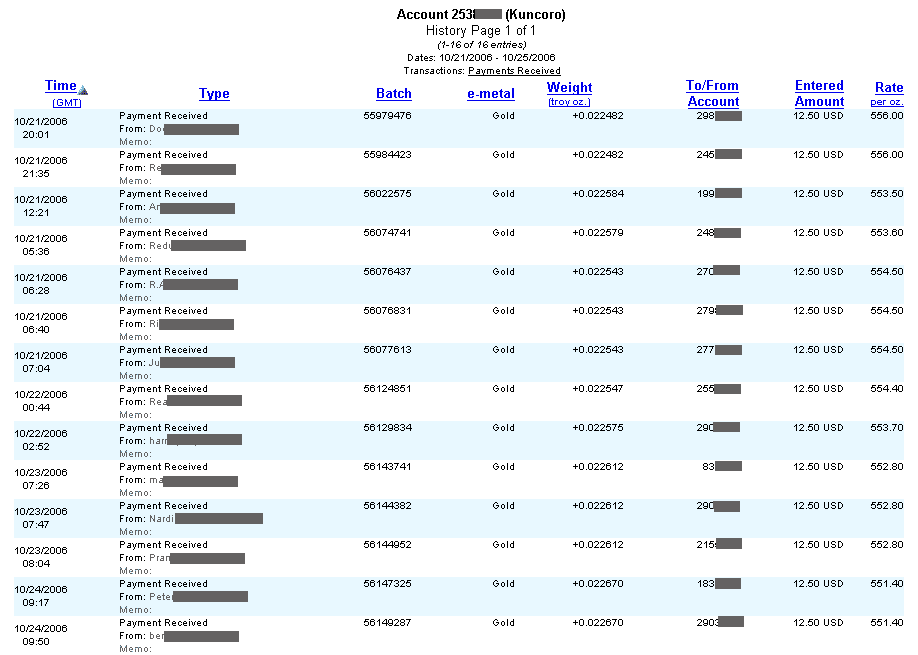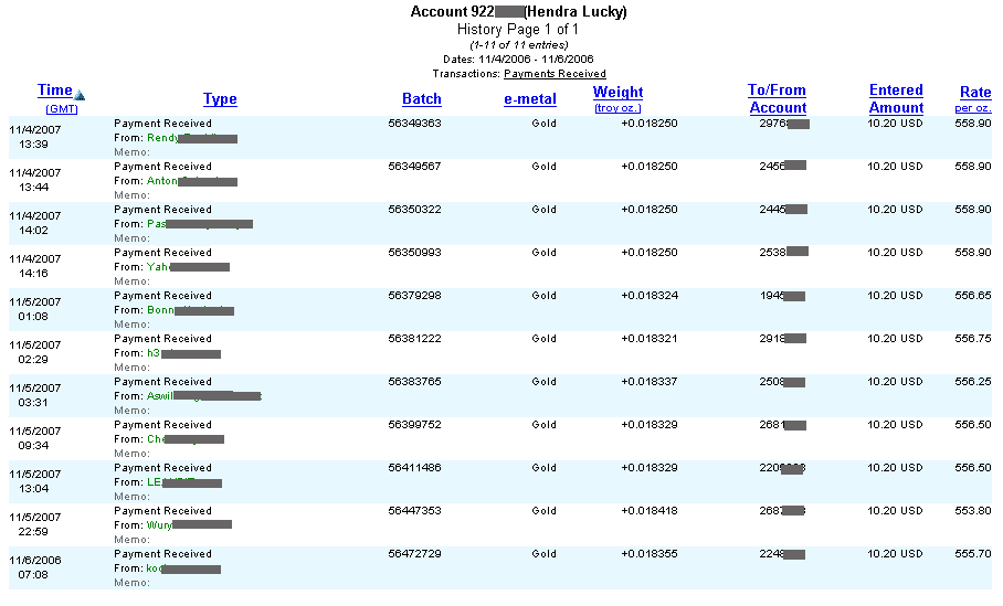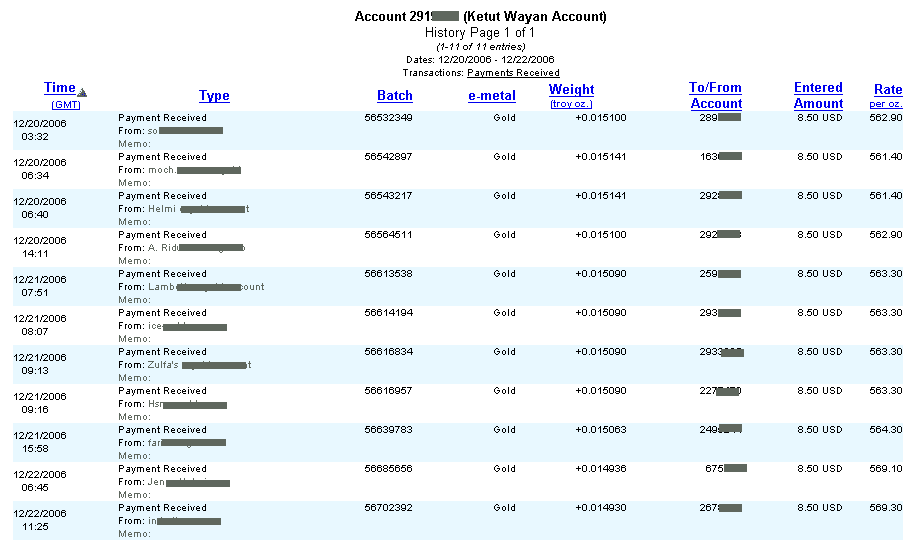 Bukti Laporan rekening e-gold dari beberapa member kami setelah menggunakan Script Sedot E-gold :